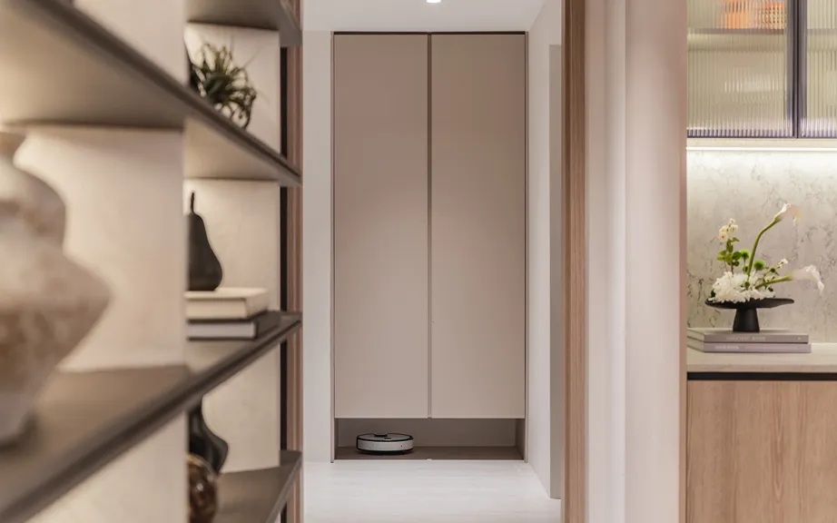Find easy storage for your robot vacuum, with a cubby built in for the daily-use appliance to be tucked away seamlessly and discreetly.